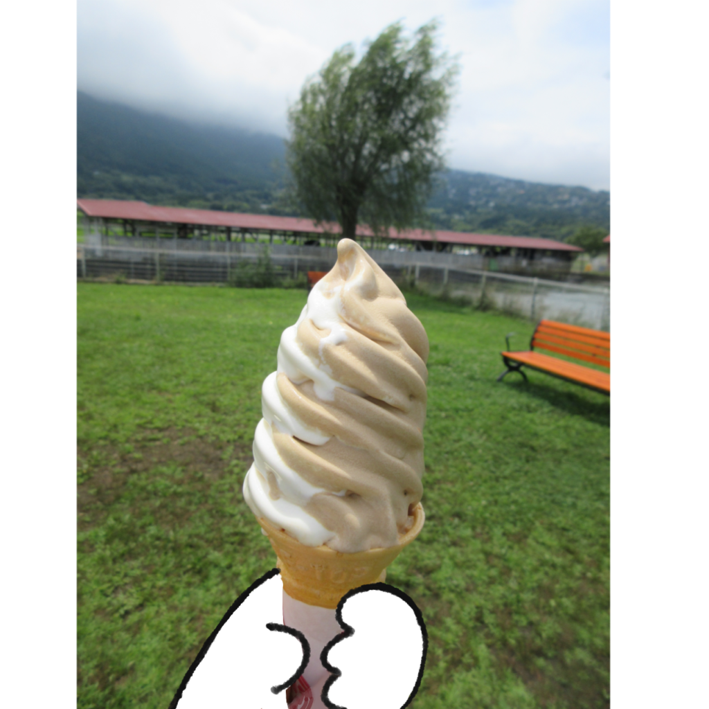 チョコムース、ソフトクリーム、イチゴソース、チョコレートソース、ウェハースと最高の組み合わせ💕